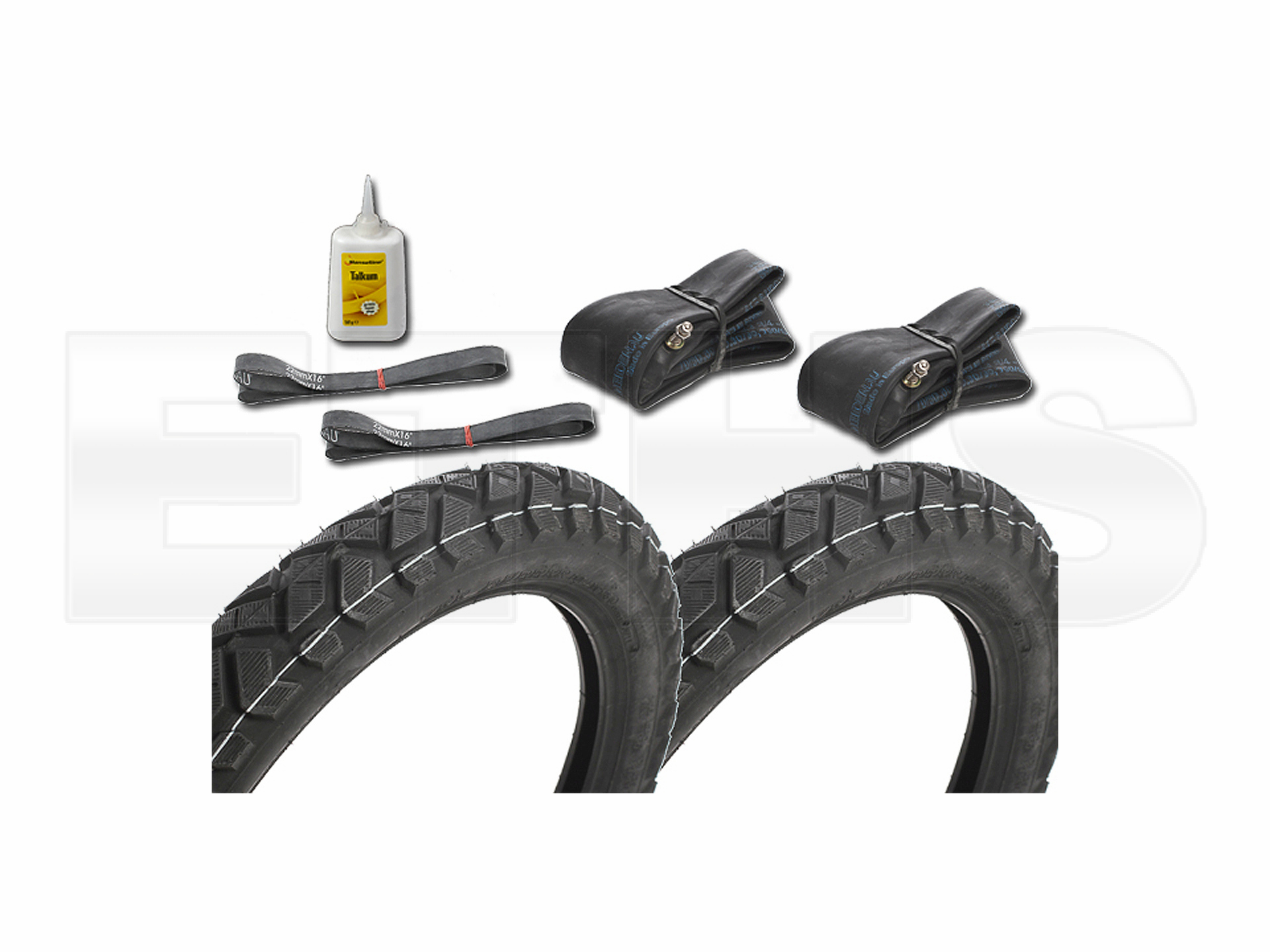 Das Reifen Set beinhaltet 2-Reifen, 2-Schläuche und 2-Felgenbänder.
